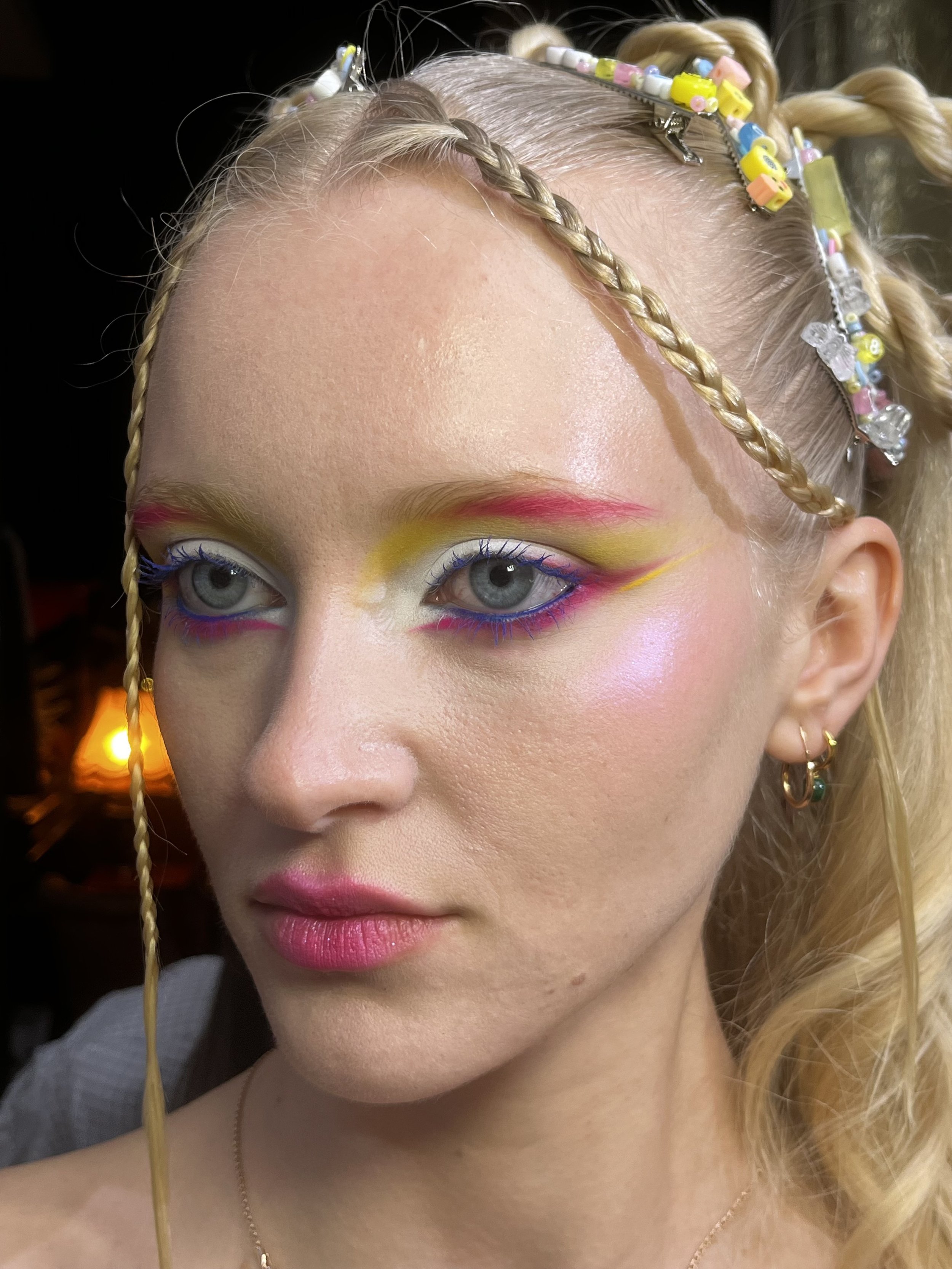 L’univers de Clotilde est très lié à ses émotions. Elle considère le maquillage comme une extension de sa personnalité : à la fois doux et intense. La nostalgie et la tendresse occupent une place centrale dans son travail et donnent naissance à des looks considérés comme irréels et poétiques. Son esthétique se situe entre beauté et imaginaire, qu’elle décrit comme du “Fantasy Glam”. La makeup artiste joue avec les textures, la lumière et les couleurs pour créer des compositions poétiques et féeriques inspirées par des souvenirs d’enfance et la pop culture des années 80 à 2000.