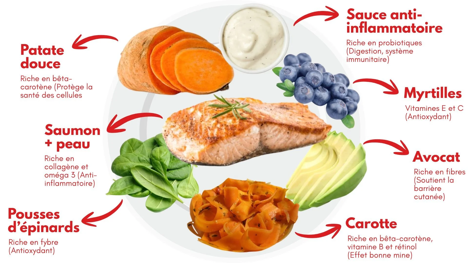 Des aliments, d'apparence pourtant simple, sont définis par les substances nutritives qui les composent. La carotte est caractérisée de rétinol alimentaire. La myrtille d’un antioxydant et anti-âge. L’avocat comme un soutien de la barrière cutanée.