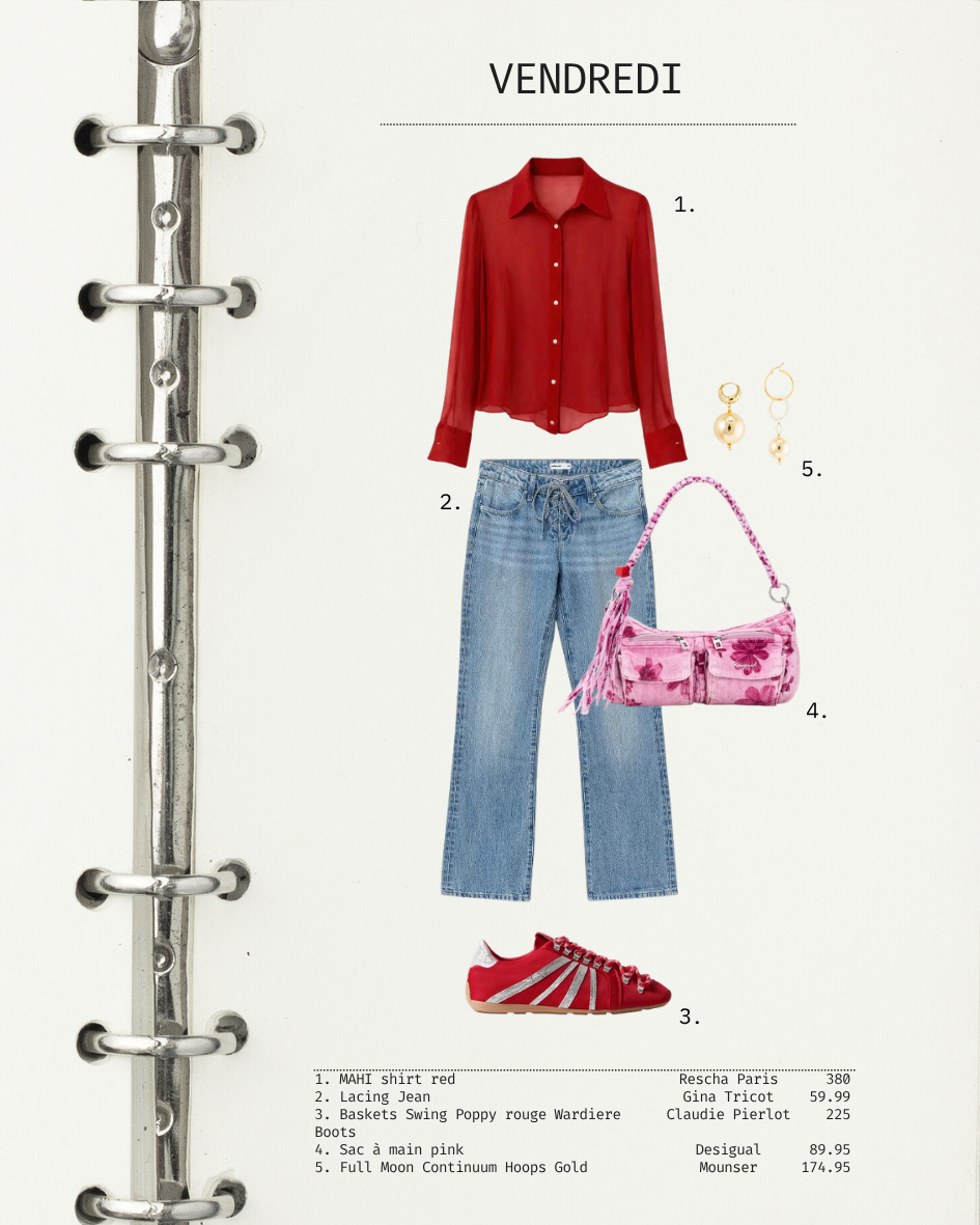 Du jean bleu classique, aux icontournables tank tops noir et blanc, en passant par des éléments plus marqués comme une chemise rouge en mousseline de soie, découvrez une semaine de looks capsules signée PRSNA.